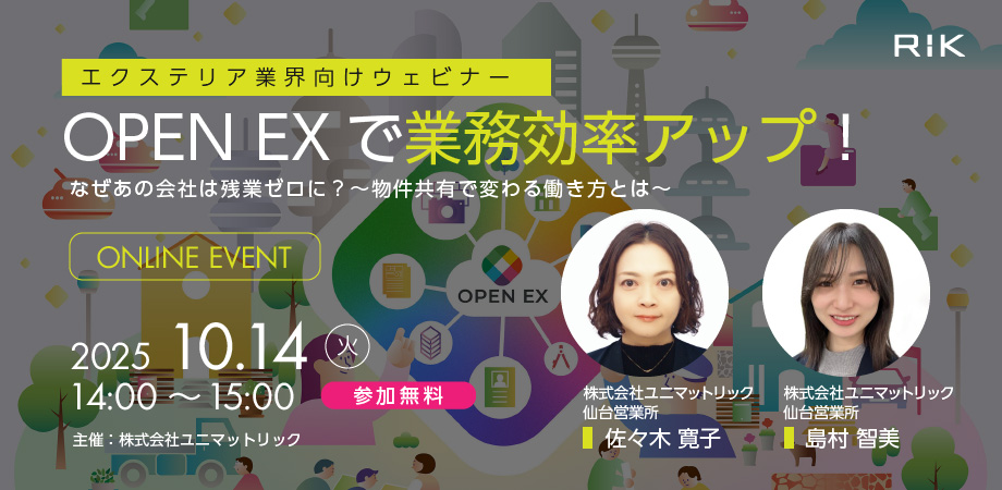 【ウェビナー】OPEN EXで業務効率アップ!なぜあの会社は残業ゼロに?~物件共有で変わる働き方とは~