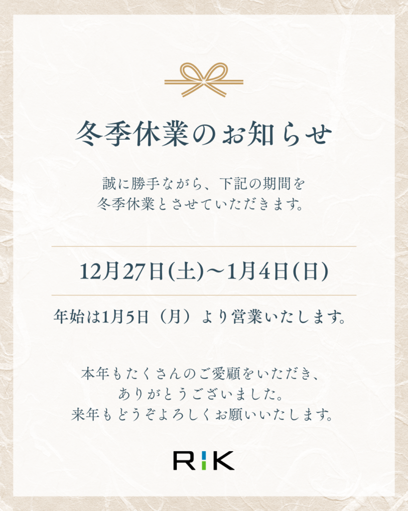 ※2026年1月5日(月)より平常通り営業させていただきます。